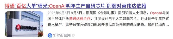 早在9月初的时候,博通与OpenAI达成了价值高达100亿美元的合作协议,共同设计自主人工智能芯片,并计划于2026年正式投入量产。