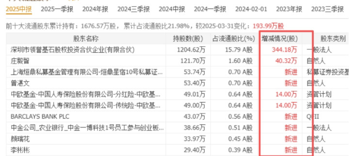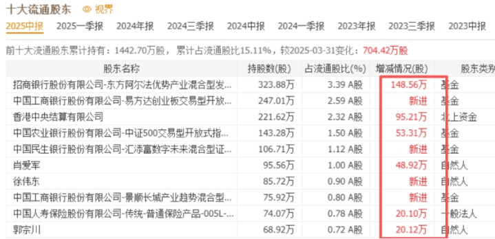 机构动态:前十大流通股东中加仓1454万股,8大股全部新进。